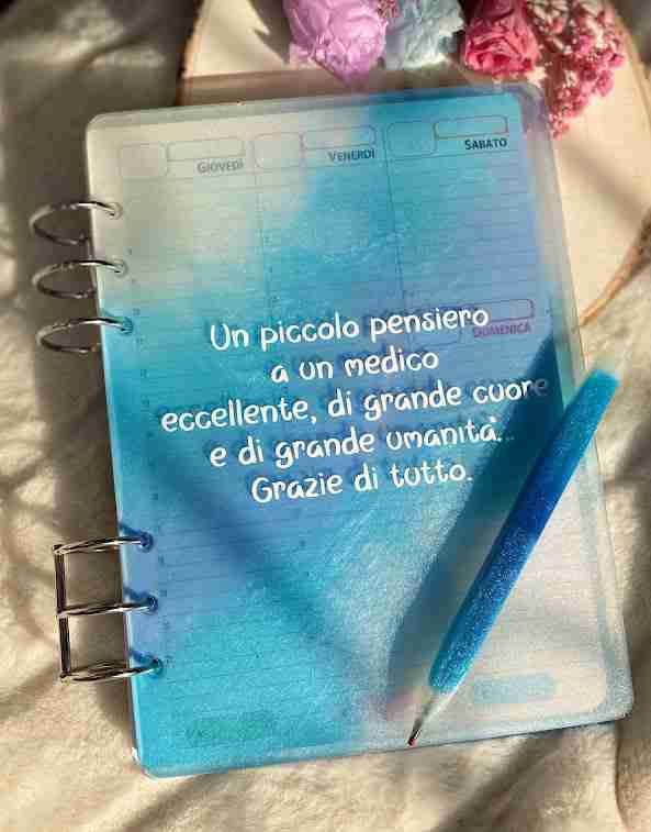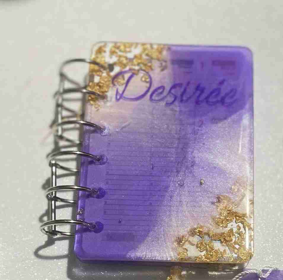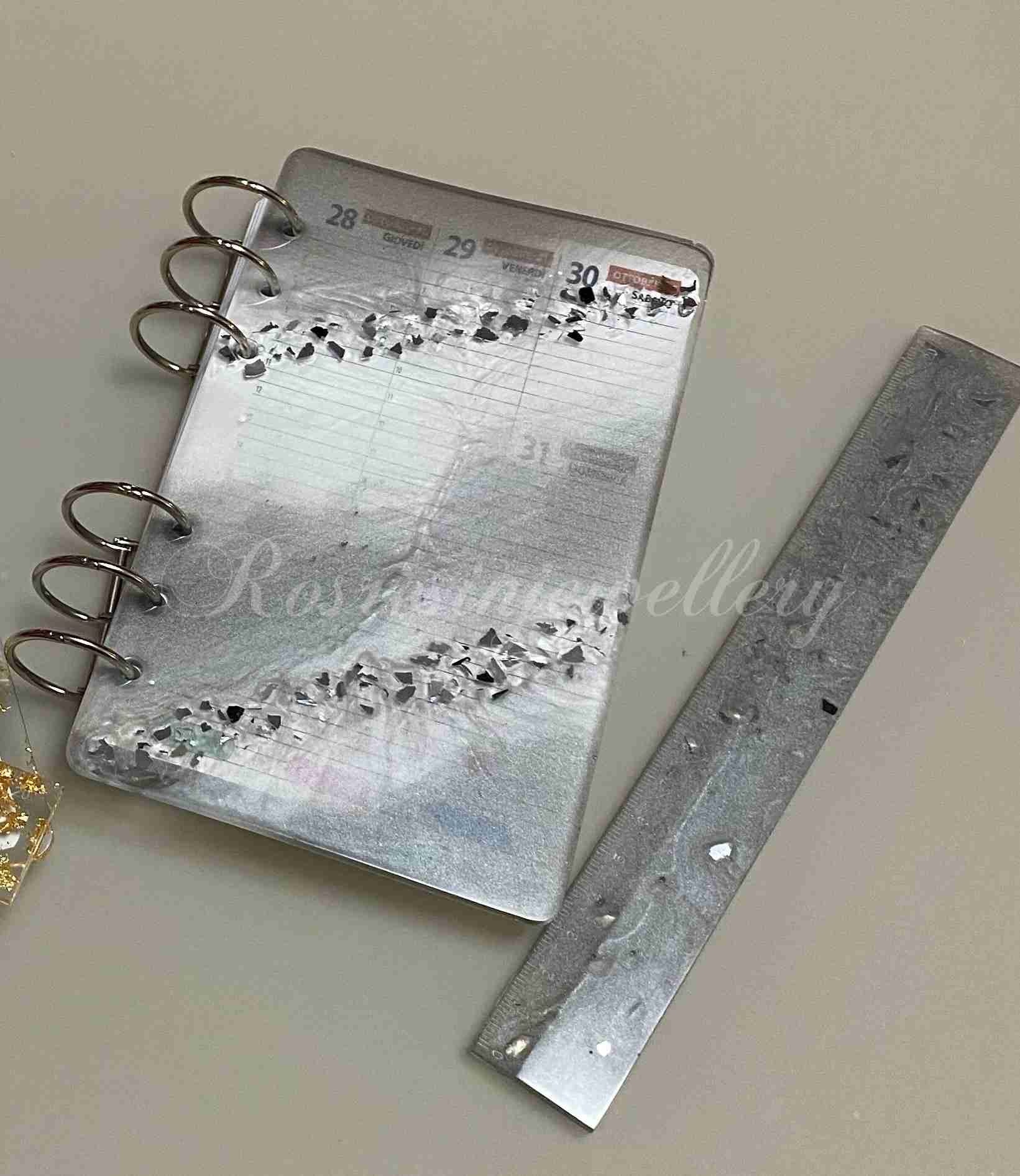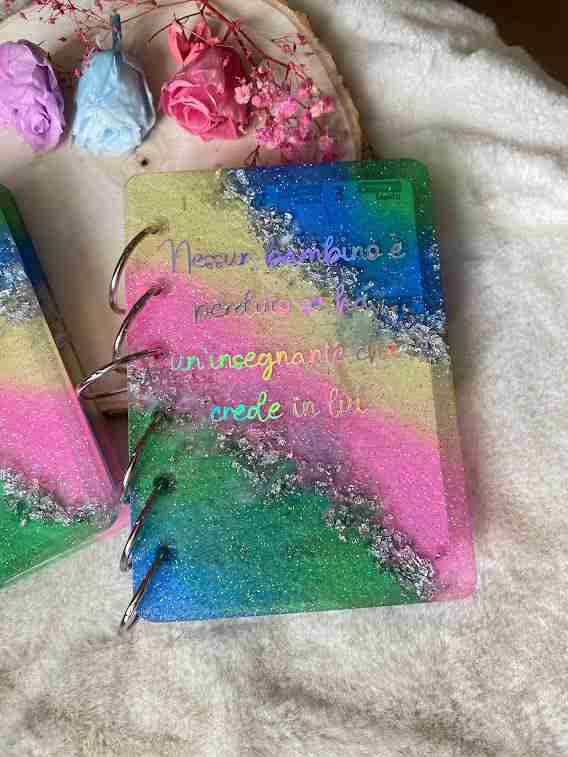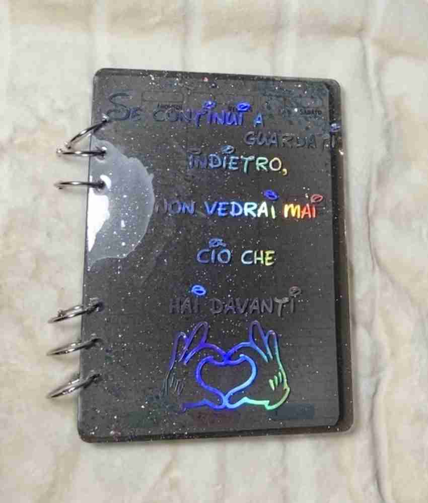 Agenda con copertina personalizzabile in resina, fronte e retro, con colori, fiori essicati e dettagli (come nomi e/o scritte sulla copertina fronte) a tua richiesta.