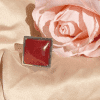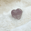 Ring with adjustable semi-open stainless steel base on one side has a ball at the end and on the other a silver-colored heart with flakes of gold and black leaf.