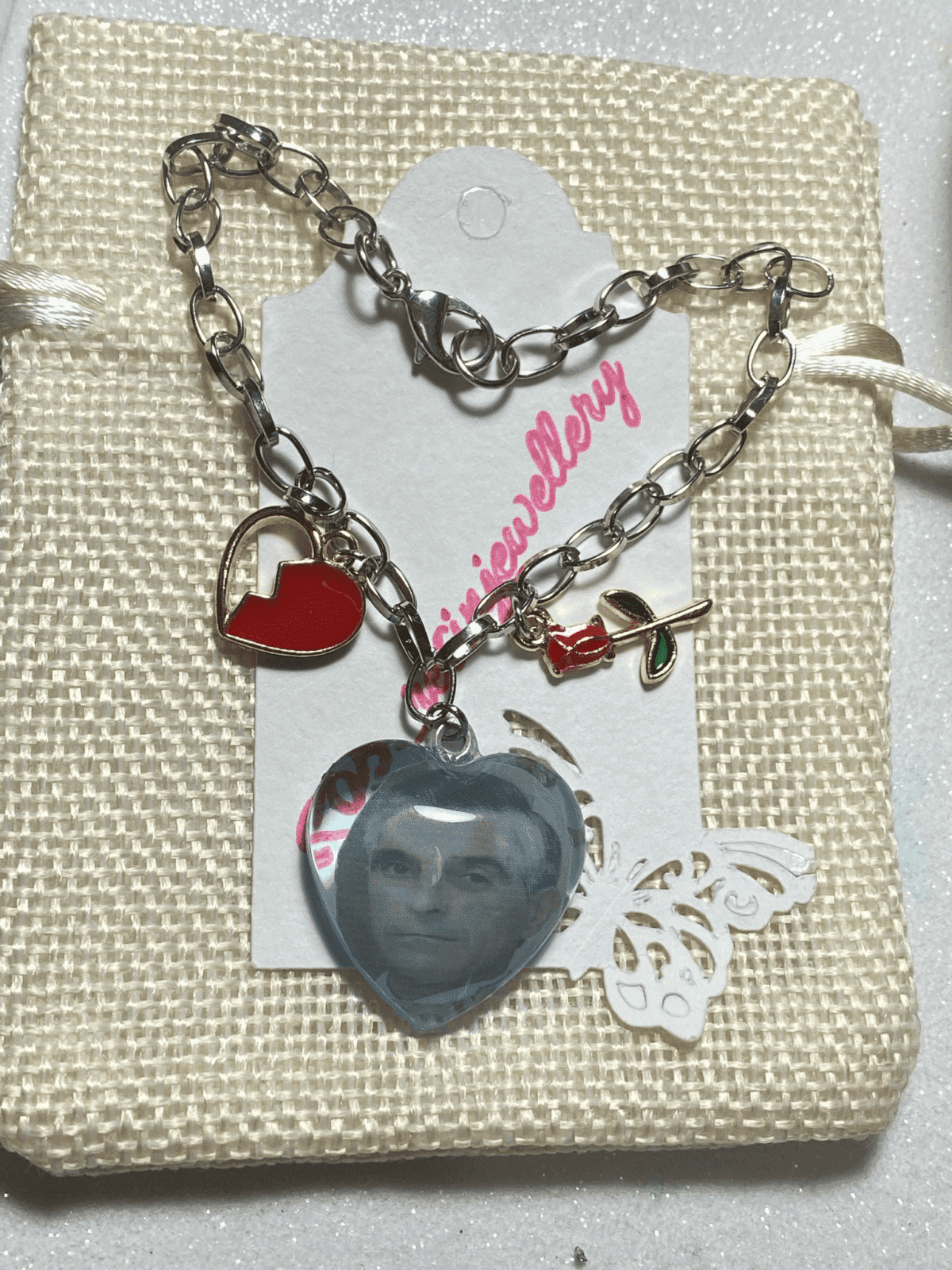 Braccialetto in acciaio inossidabile(la maglia del bracciale potrebbe cambiare in base alle disponibilità) con ciondolo cuore in resina e foto inglobata.