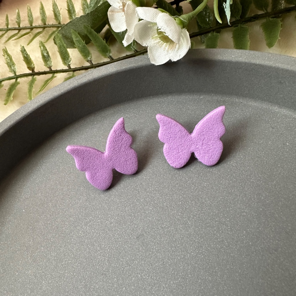 Orecchini realizzati a forma di farfalla viola con effetto ruvido