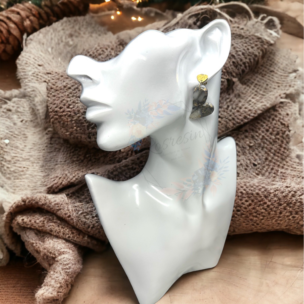 Orecchini realizzati a mano a forma di goccia in argilla polimerica con charm dorato e zirconi per un tocco di eleganza.