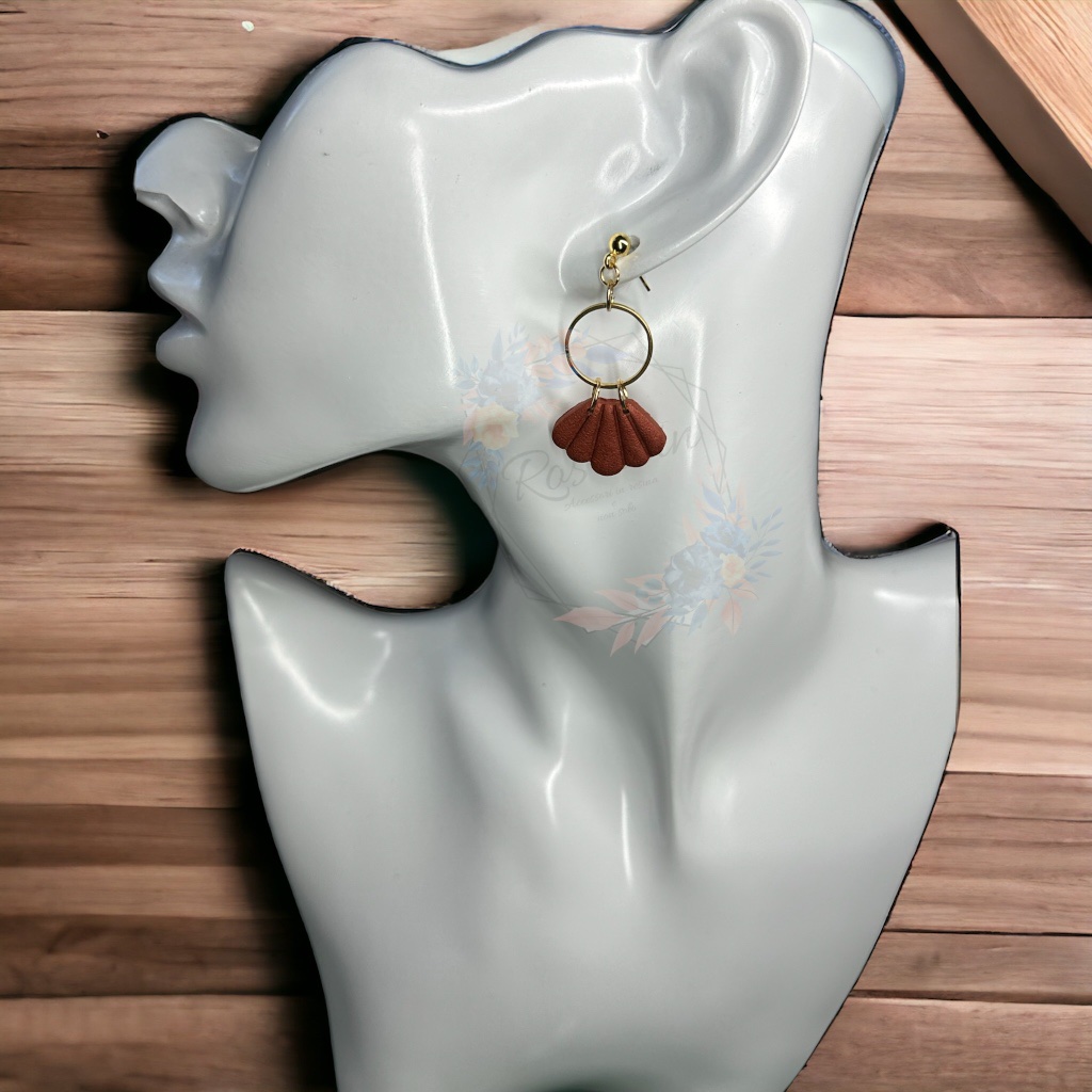 Orecchini pendenti color bronzo, a forma di fior di Loto, realizzati a mano in argilla polimerica con chiusura a farfallina sul lobo.
