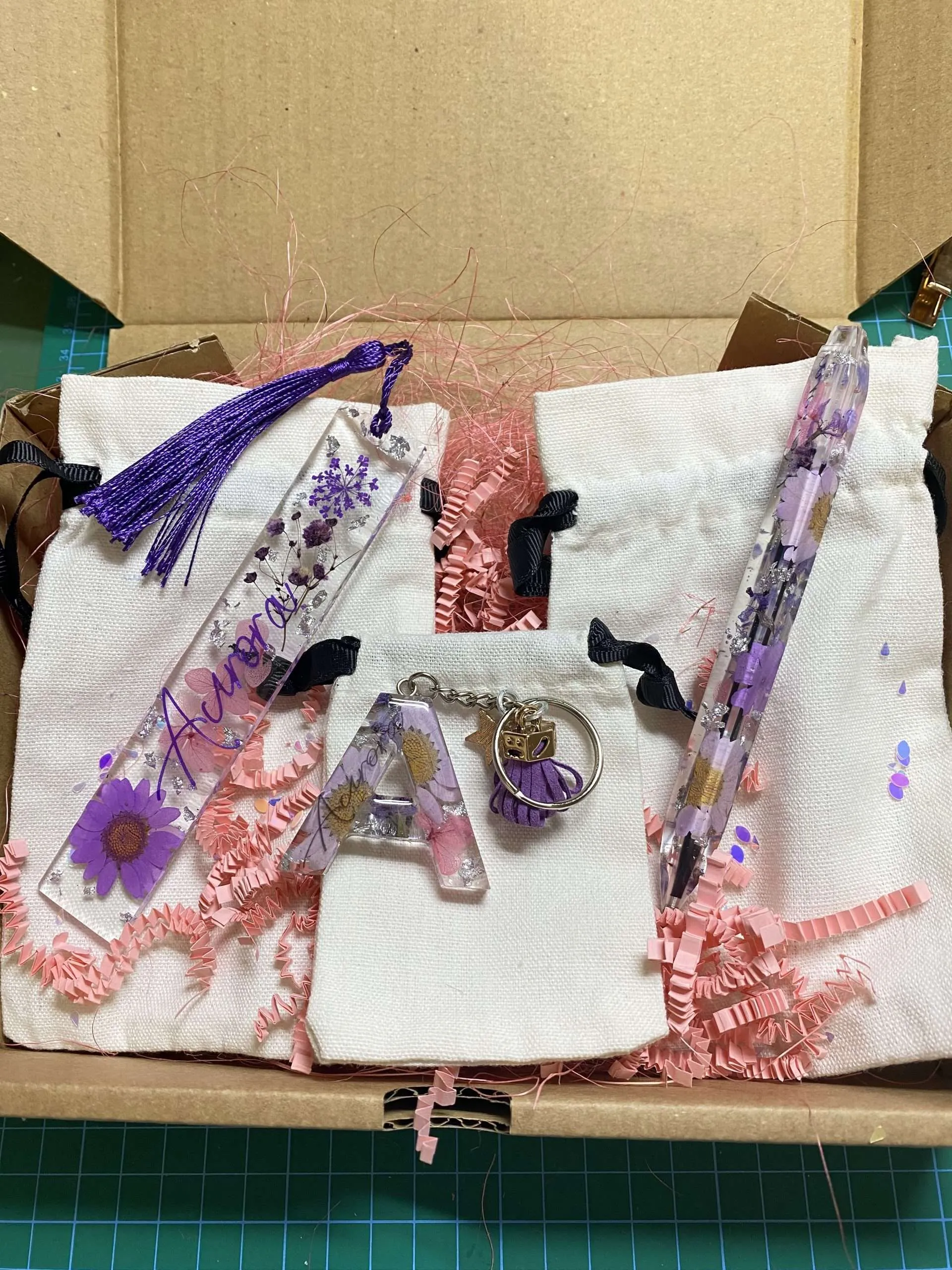 Penna con cubo porta penne abbinato in resina personalizzabile con fiori o colori o qualche aggiunta di glitter, scegli il colore dell’inchiostro e il modello della tua penna.