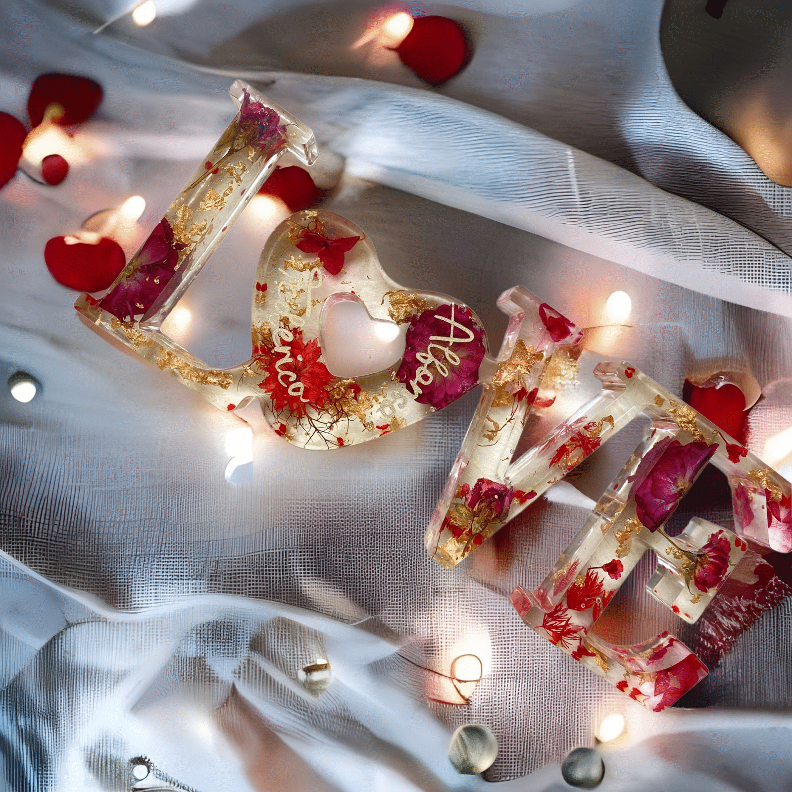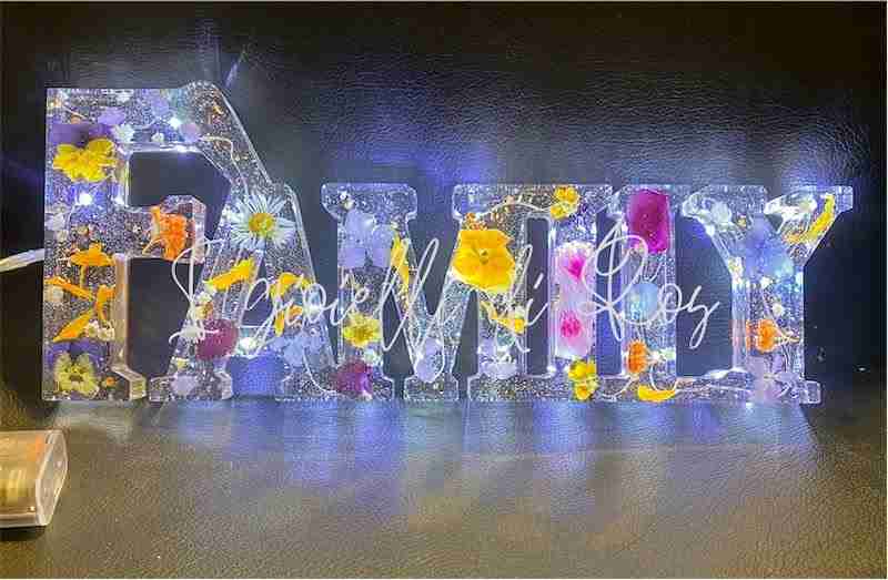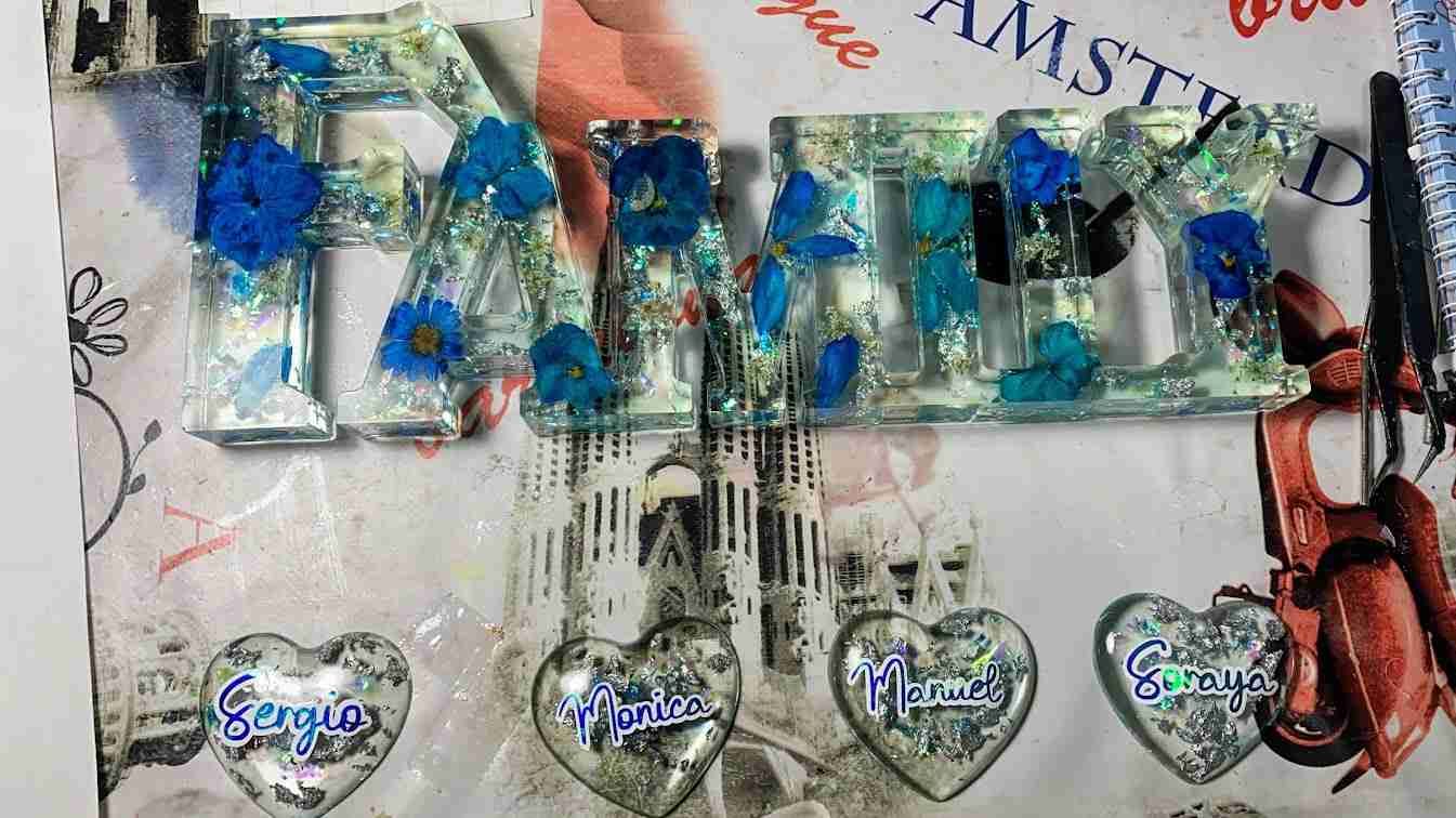 Scritta Family in resina con cuori appesi sottostanti con nomi della famiglia e anche dei vostri amici pelosetti.