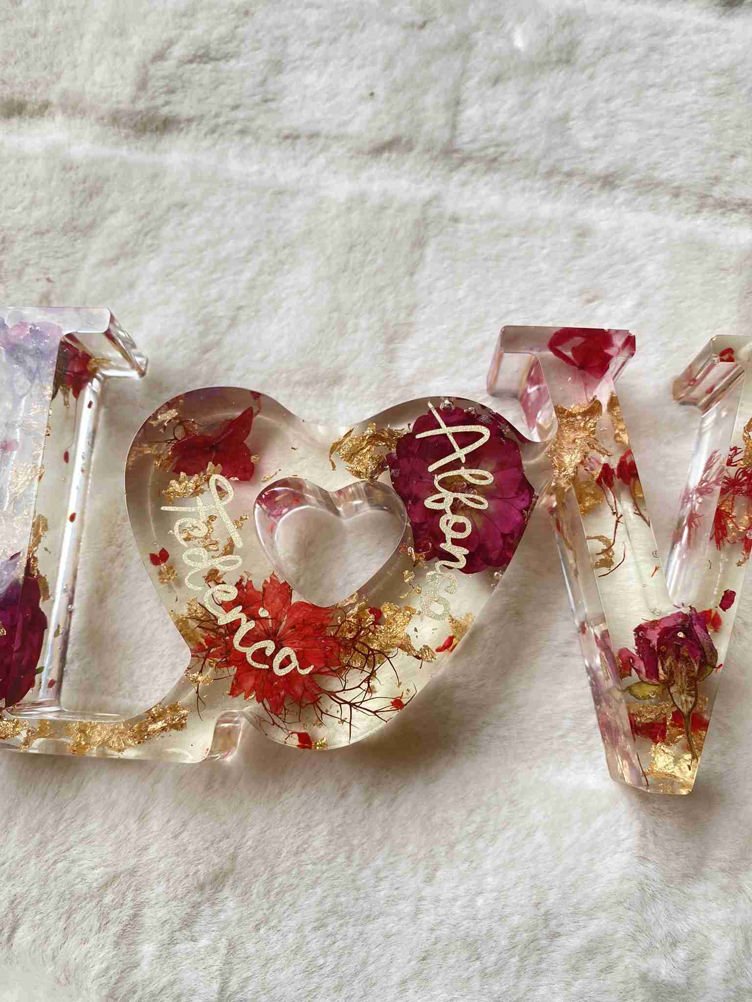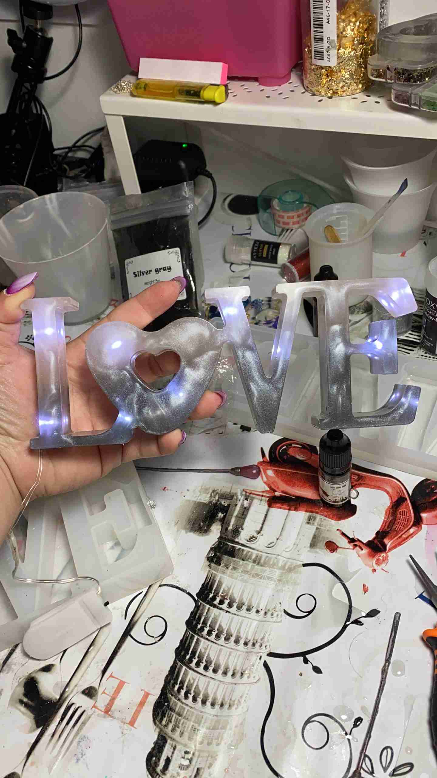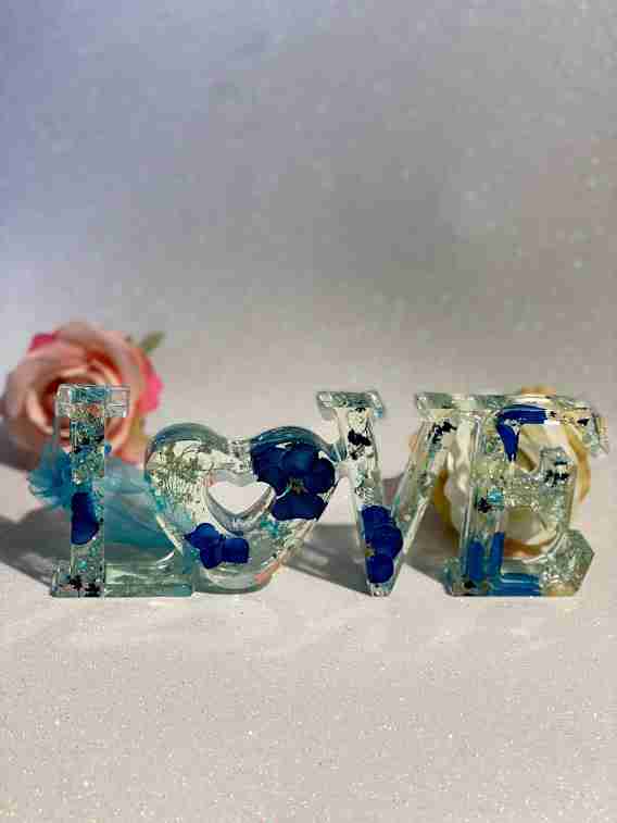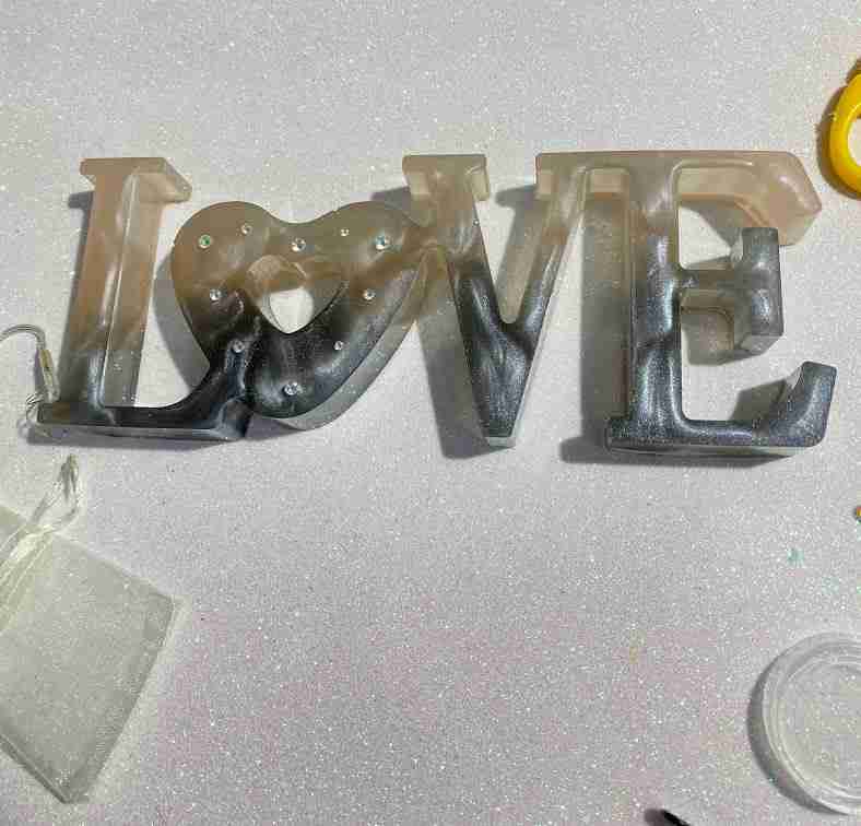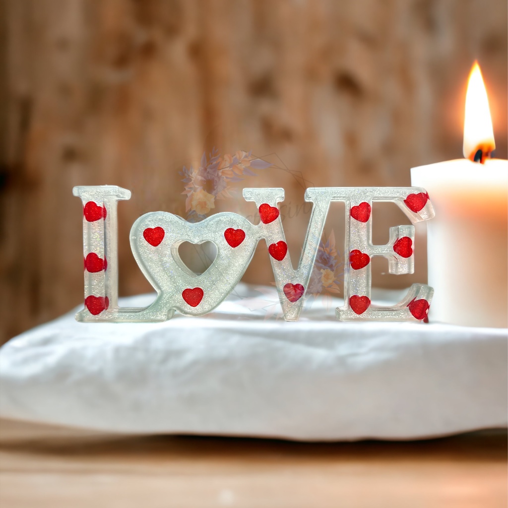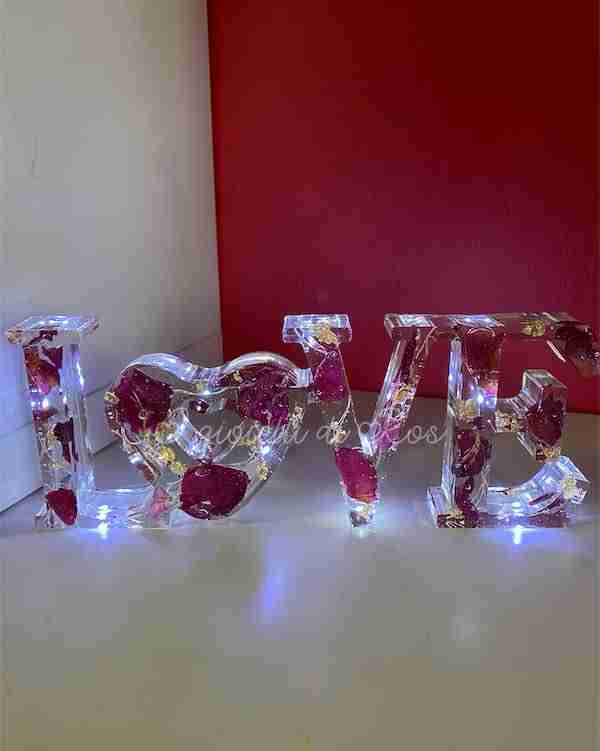 Scritta Love in resina con possibilità di aggiungere luci a led.